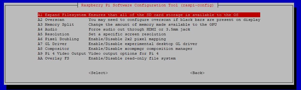 A1. Expand Filesystem - > SD카드 나머지 부분도 쓸수 있도록 설정하기