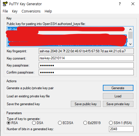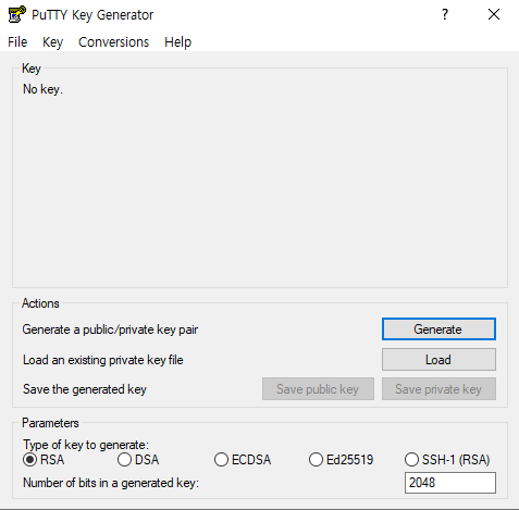 4. puttygen.exe 프로그램을 실행하면