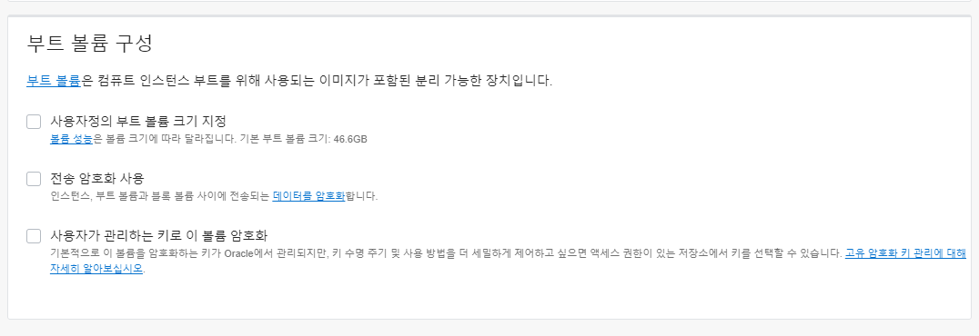 그냥 나는 기본으로 체크 안하고 함.. 46기가의 5기가나 쓰려나.. 인스턴스를 2개까지 무료로 만들수 있으니 혹시 몰라