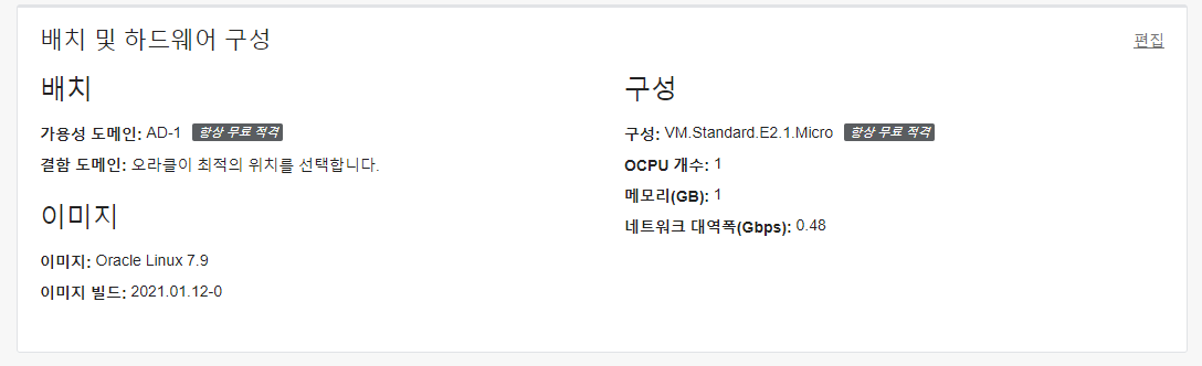 2. 편집을 눌러서 OS 정도만 바꿔준다. 우분투나 CentOS로