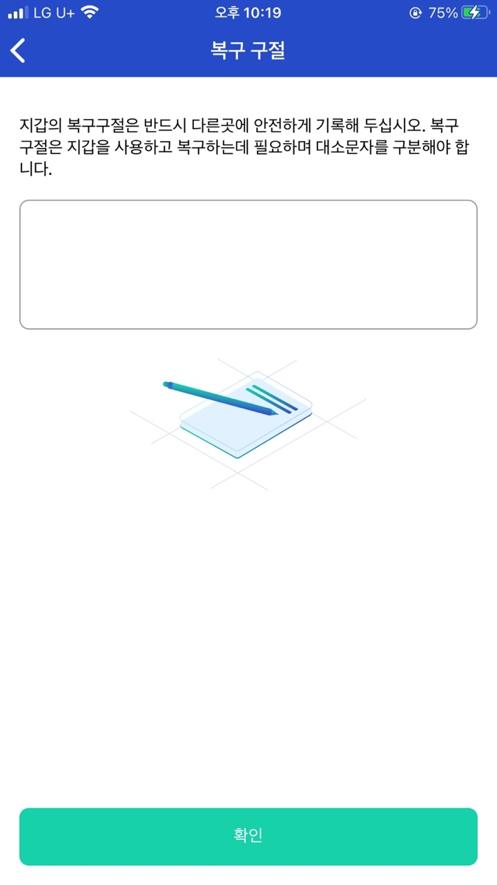 종이 옮겨 적어놓자. 나중에 암호를 까먹을 경우 복구할 때 사용된다.