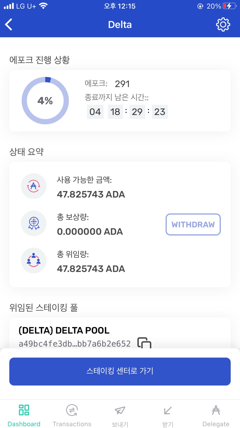 에이다를 위임한 풀의 ticker 가 DELTA 이다.