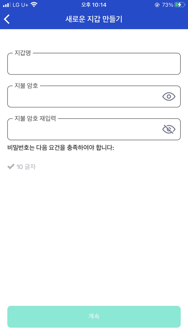 4. 지갑이름(통장 별칭)과 암호를 만들자