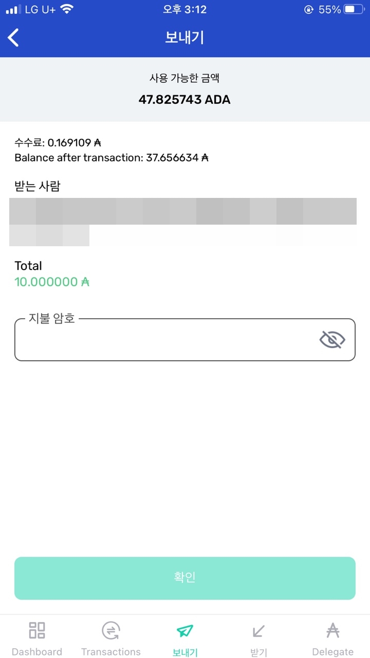 6. 지불암호를 넣고 확인 버튼을 클릭하면