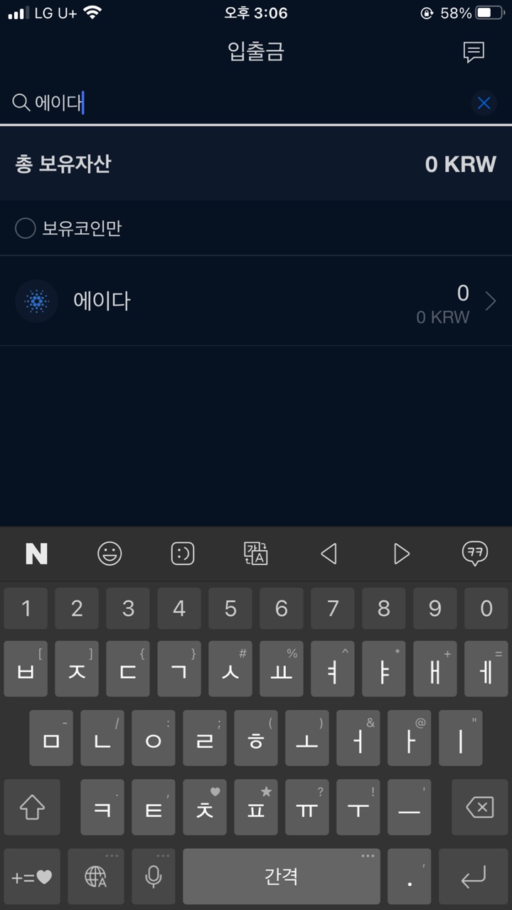 업비트로 ADA가 옯겨진 것을 확인 할 수 있다.