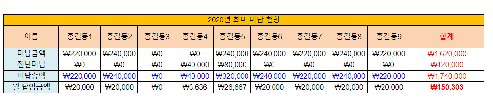 해가 바뀌면 전년 미납값이 변경되기 때문에