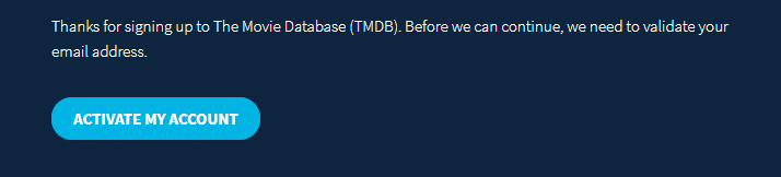 가입시 적은 이메일의 메일함에서 TMDB에서 보낸 Email verification required 메일을 찾아서 "ACTIVATE MY ACCOUNT" 해줍니다.