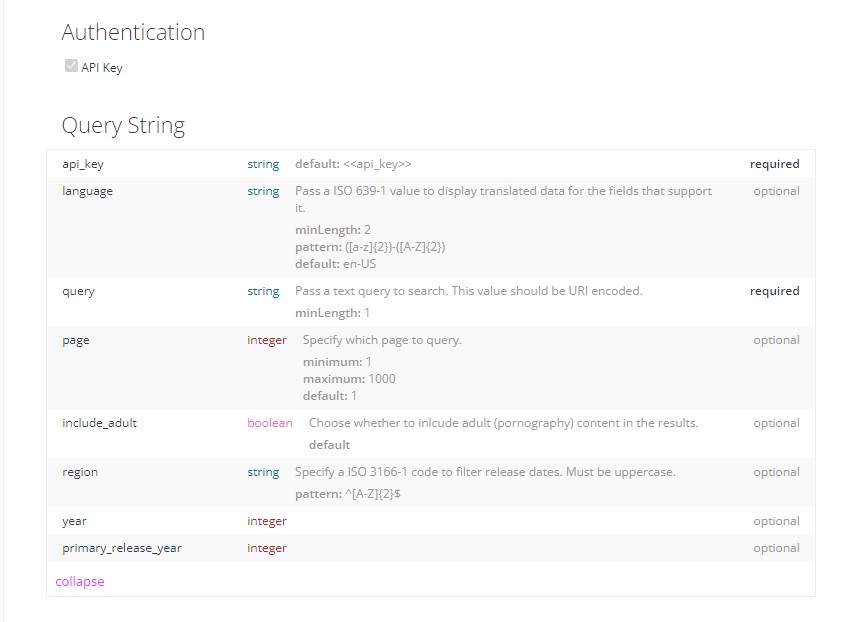 필수로 api key와 query를 받습니다.
