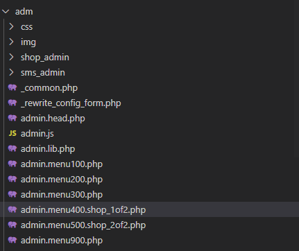 admin.menu400.shop_1of2.php 파일을 열어 수정합니다.