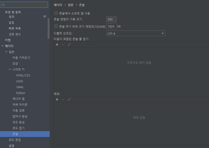 - 일반 - 콘솔 메뉴를 찾습니다.